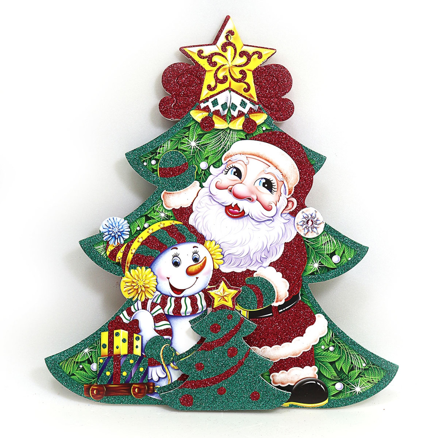 Подвеска "Елка с Дедом Морозом и снеговиком" 31*28см