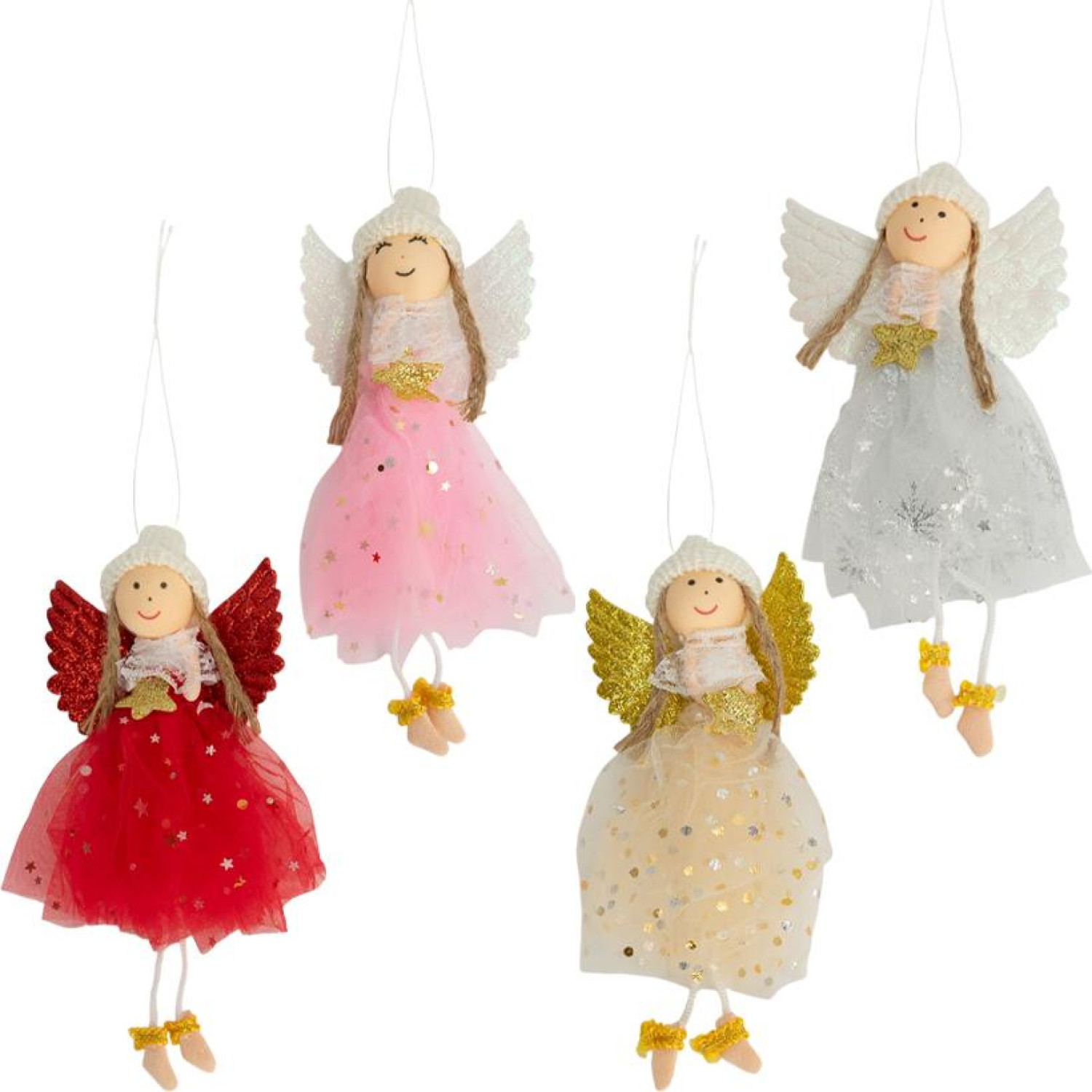Ялинкова іграшка "Лялечка Ангелятко" - витончена прикраса для святкової ялинки. Ангелятка в яскравих та ніжних сукенках із блискітками створюють чарівну атмосферу Нового року. Кожна лялечка має легку вагу, петельку для підвішування та акуратні декоративні елементи. Розмір 20х9,5 см.