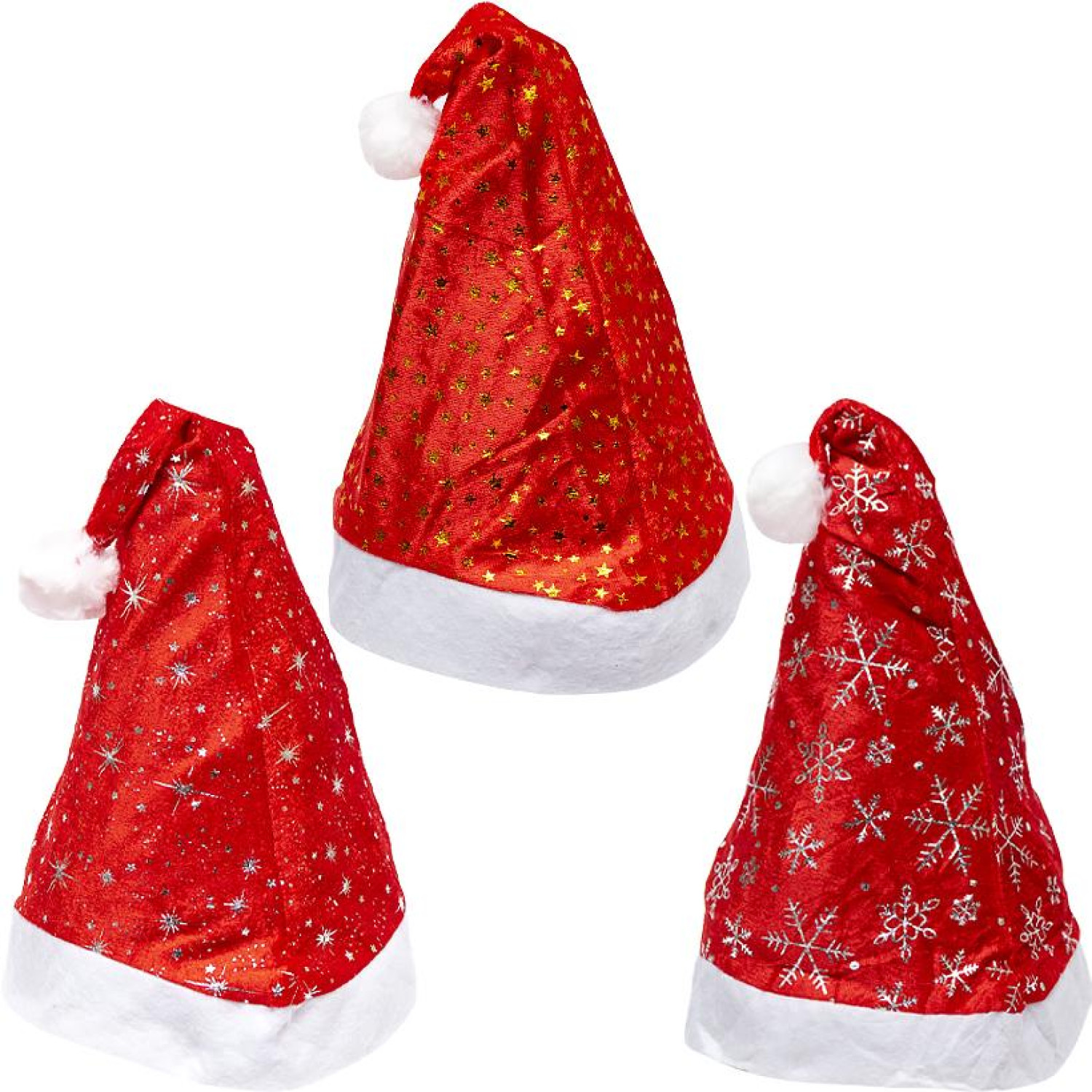 Шапка Діда Мороза червона з білою окантовкою. Матеріал виробу м'який і приємний на дотик . Об'єм 56см. Висота 37см.