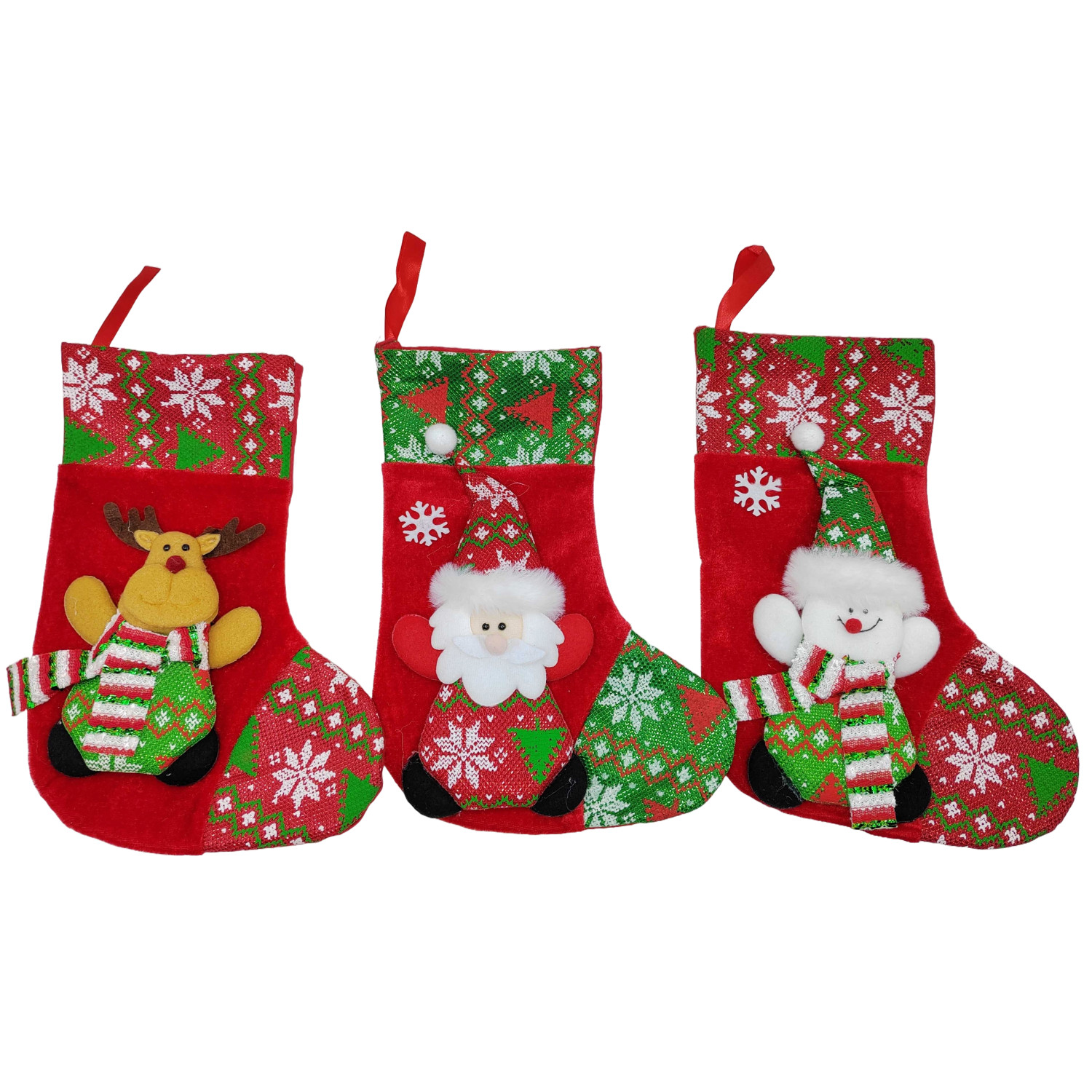Шкарпетка для подарунків з аплікац."Д.М., Сніговик, Олень" 26*17см,3в.(30*12)