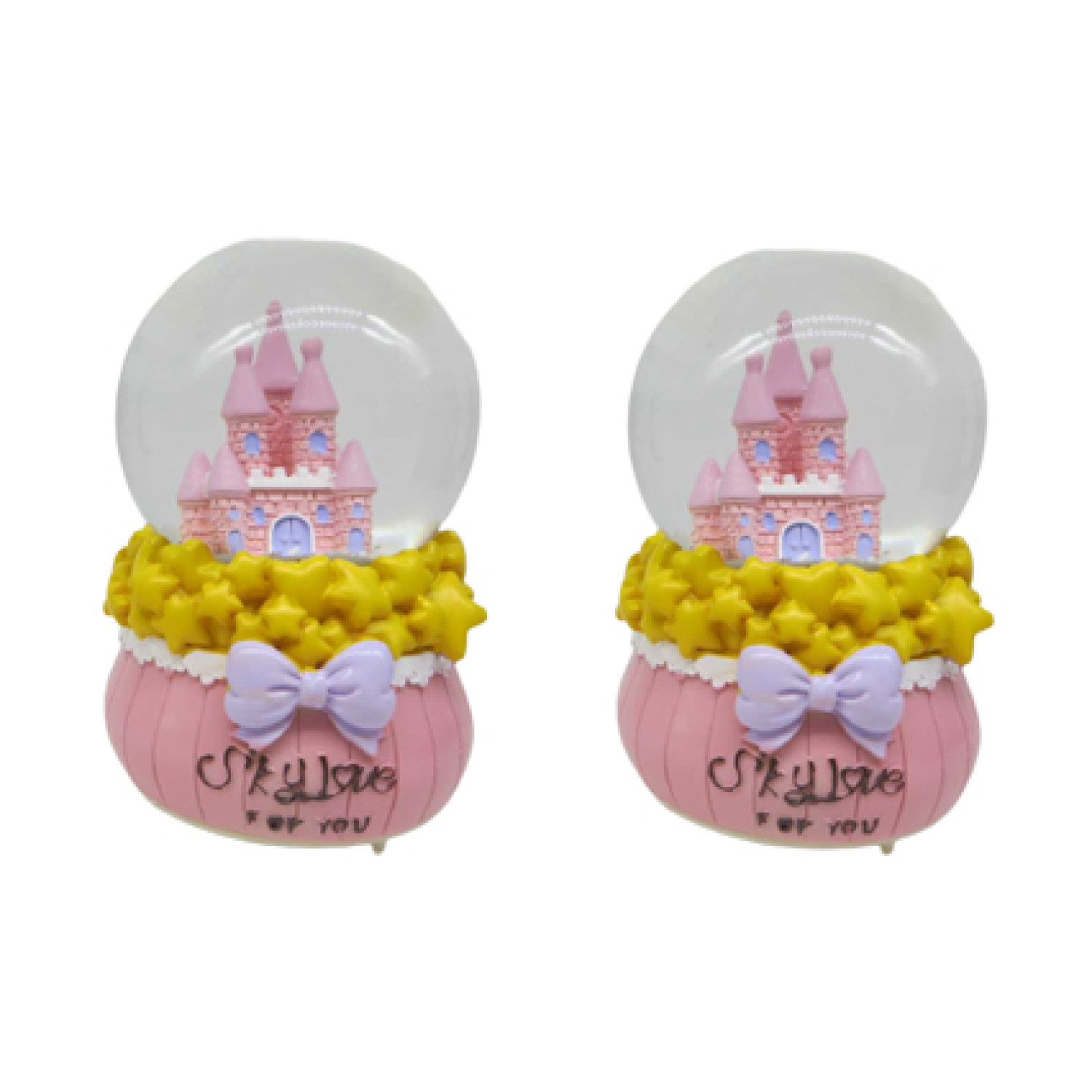 Сувен. керам.светящ.муз."Шар снежн. 80 мм - Замок мечты" розов.(1*36)