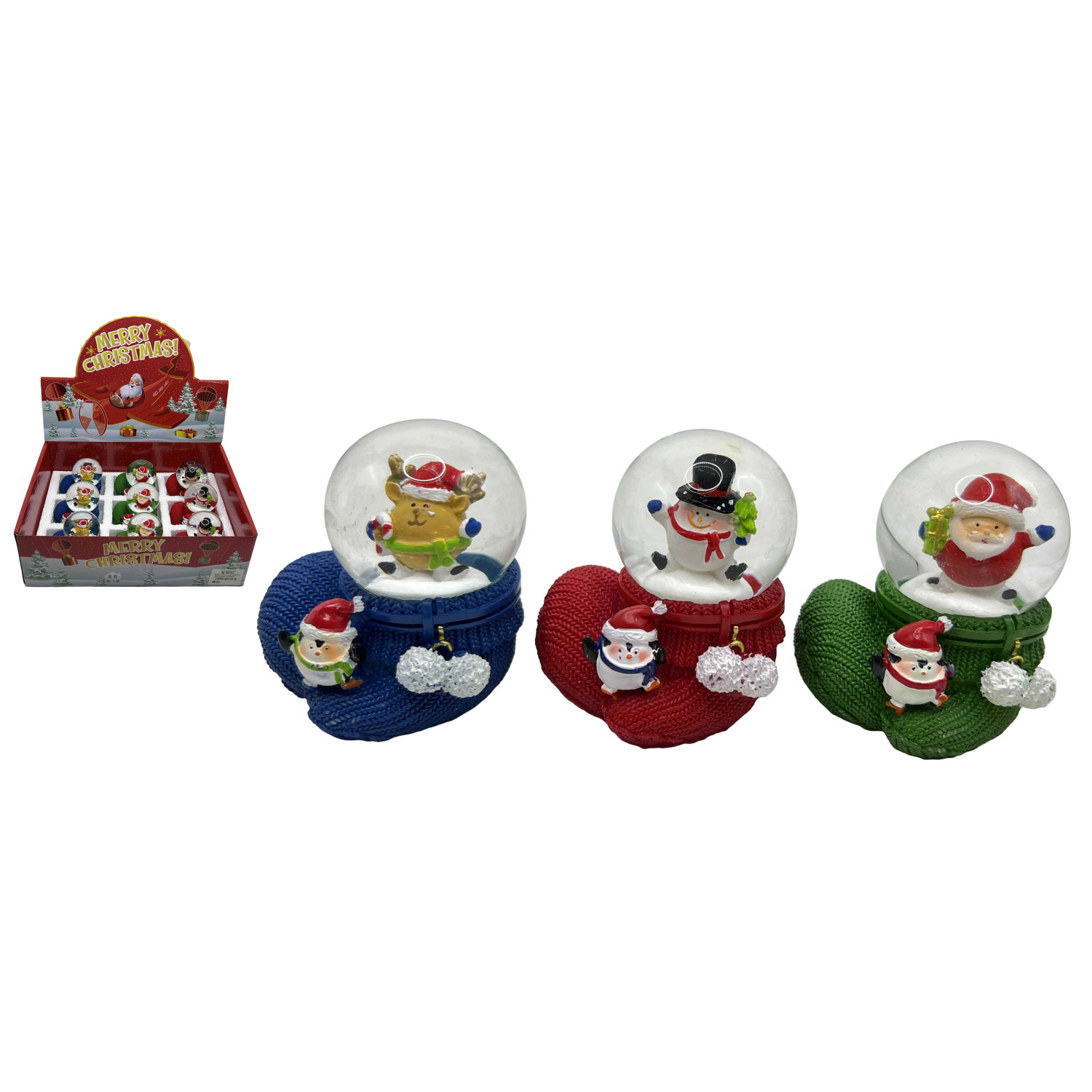 Сувенір "Куля снігова 45мм - Д.Мороз, Сніговик-рукавичка з Пінгвіном" 3в.(12*9)
