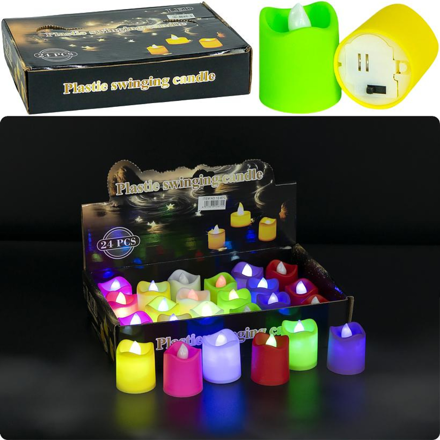 Свічка LED з полум'ям 12-67C (Колір світіння - мерехтливий кольоровий), 24шт в блоці //