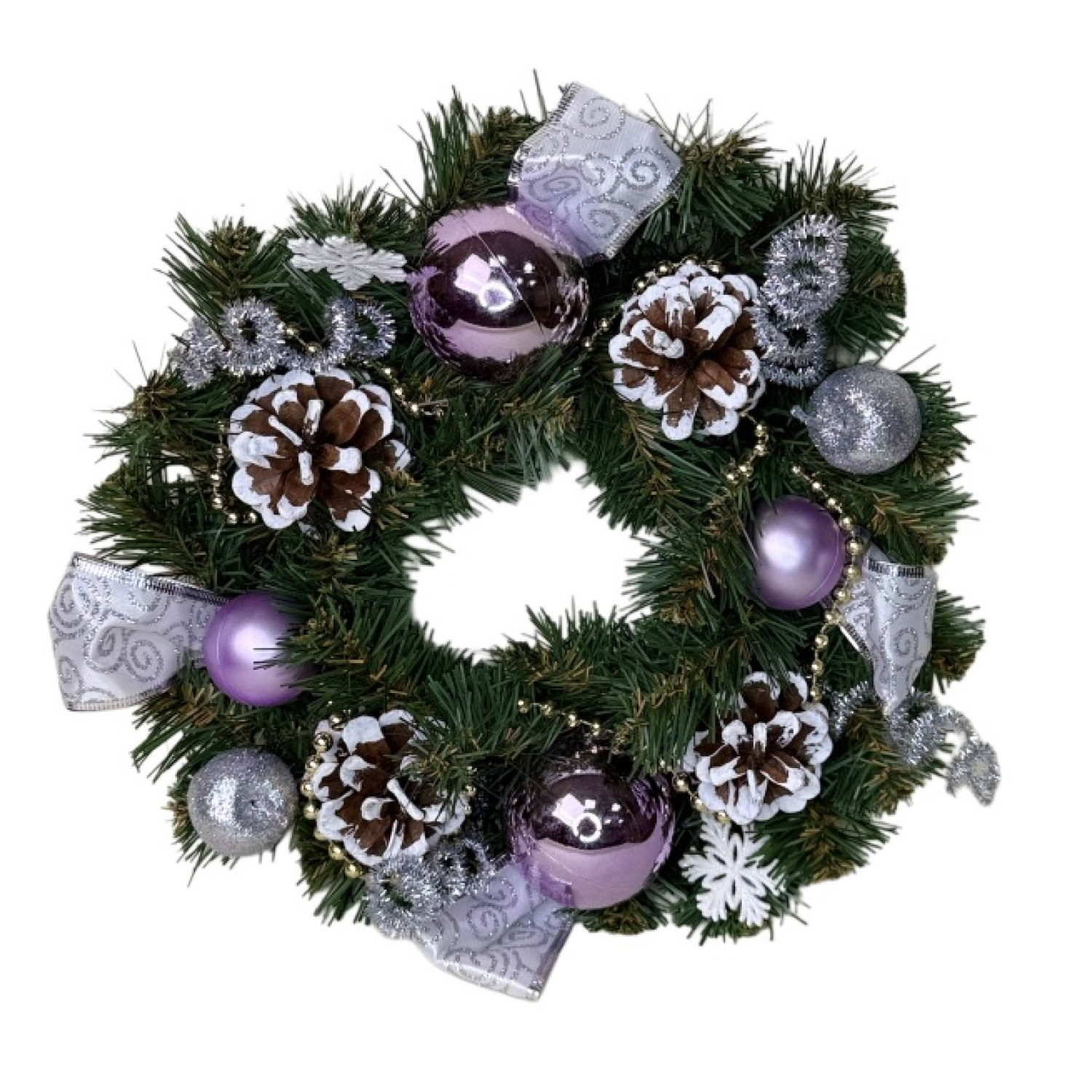 Віночок новорічний штучний має у складі декоративні та натуральні елементи. Діаметр 29 см.