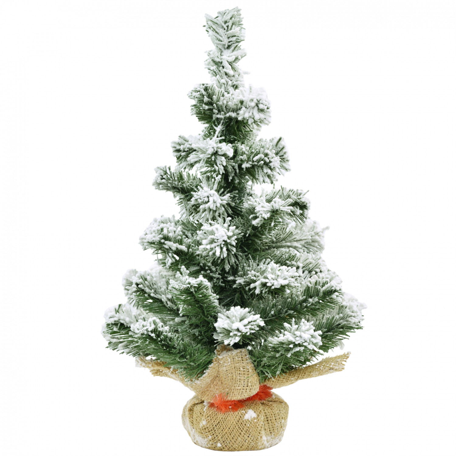 Штучна маленька засніжена ялинка - відмінний декор для приміщення у період новорічних свят, який можна використовувати, прикрашаючи безліч поверхонь у будинку, офісі, в торгових центрах. Матеріал: ПВХ плівка шириною 6 см, дріт, деревяний пеньок, обтягнутий мішковиною. Висота: 45 см. Діаметр нижнього ряду: 32 см.