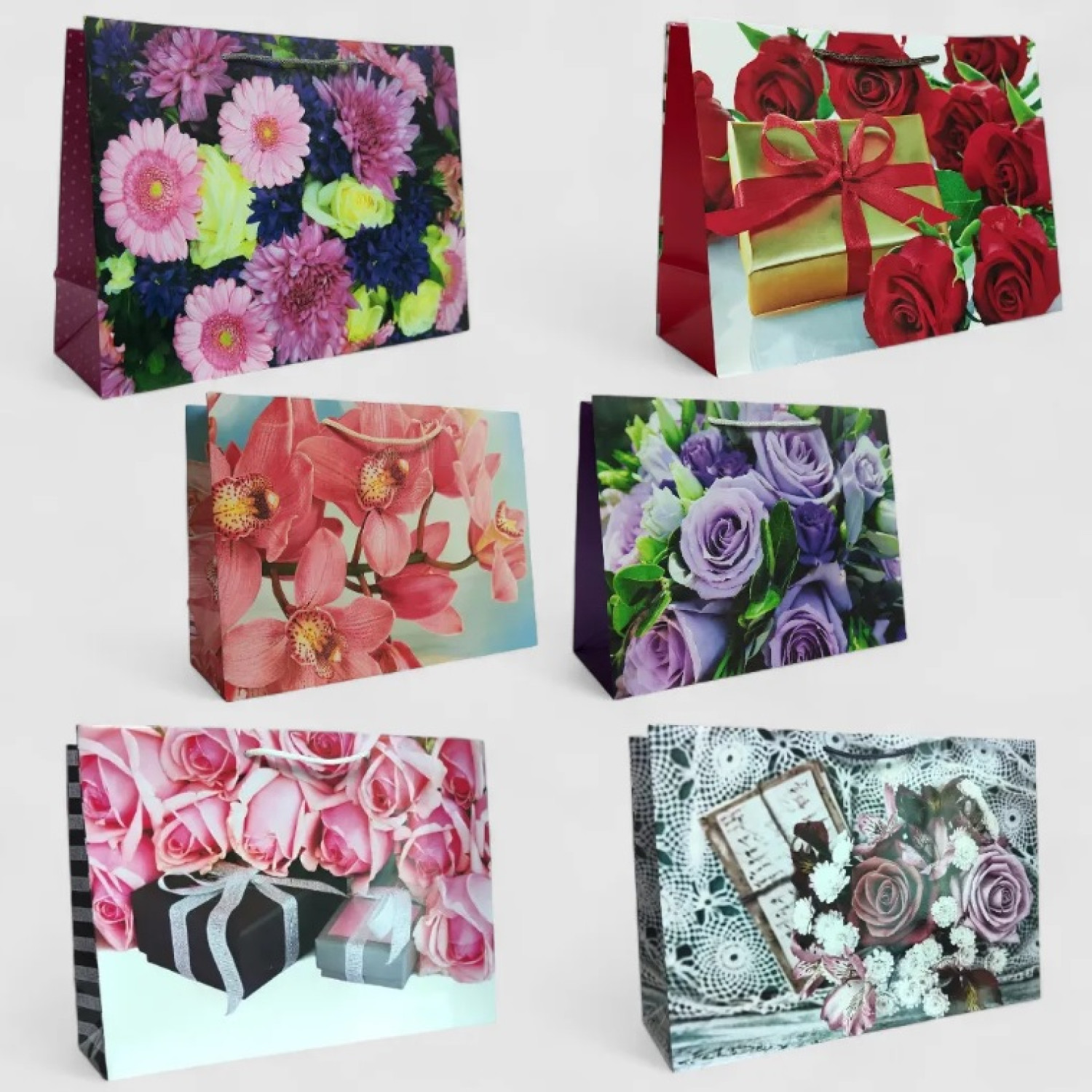 Подарунковий пакет 150грм, "Квітковий" МІКС 6 видів, 35*25*12?см 6 шт. в уп. /12/