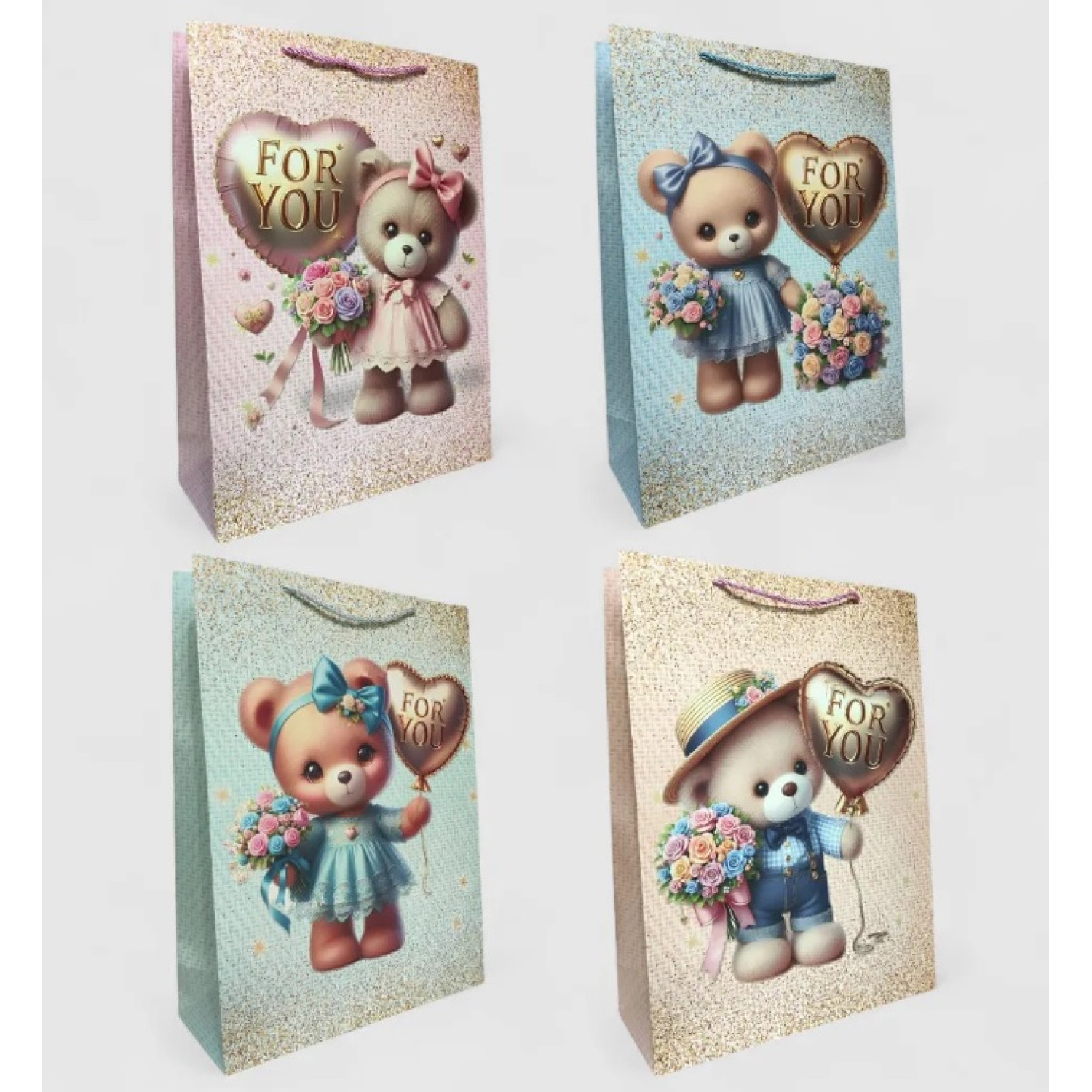 Подарунковий пакет картон 200грм, "For you" МІКС 4 види, 26*32*10см 6 шт. в уп. /12/