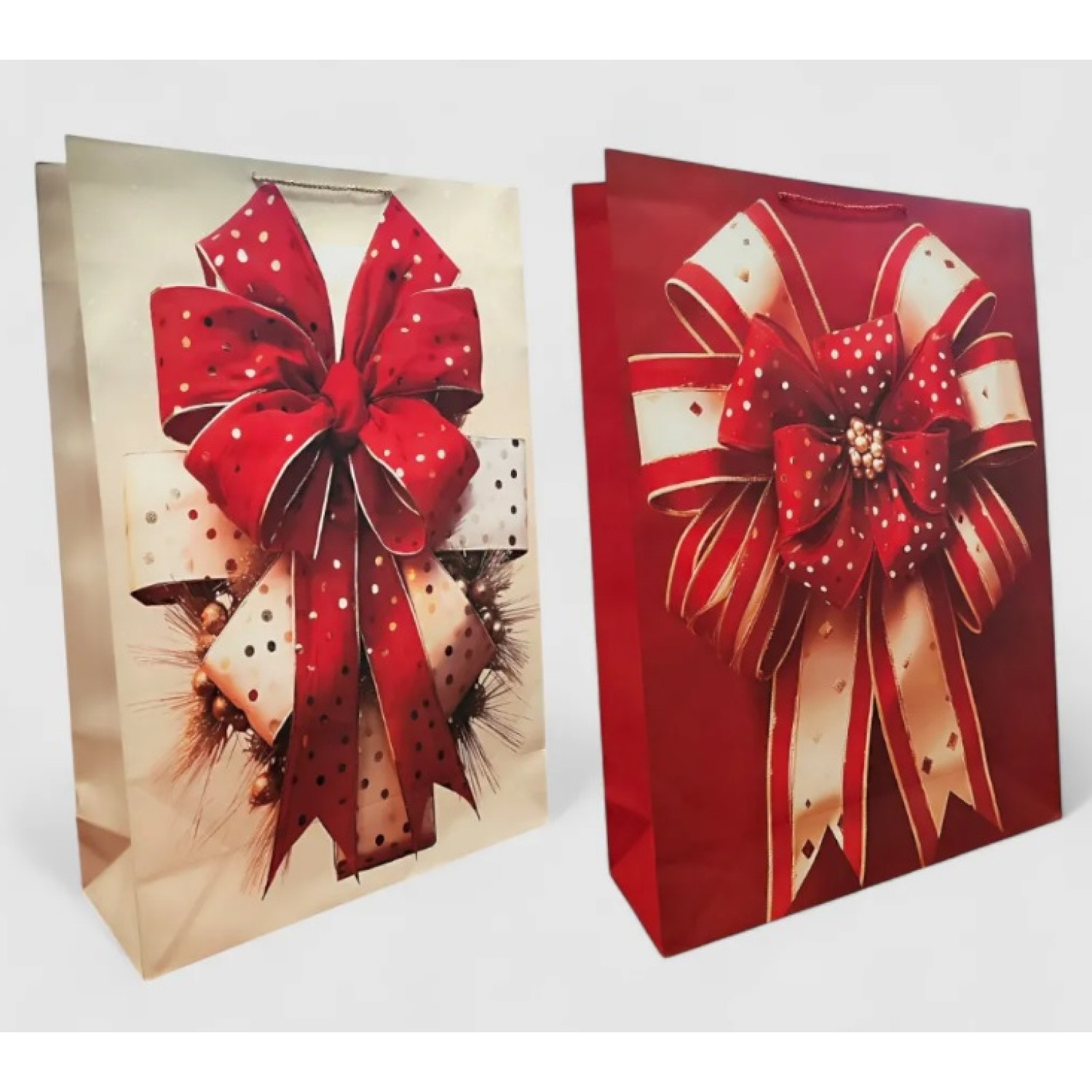 Подарунковий пакет картон 200грм, "Новорічний бантик" МІКС 2 види, 40*55*15?см 2 шт. в уп. /12/