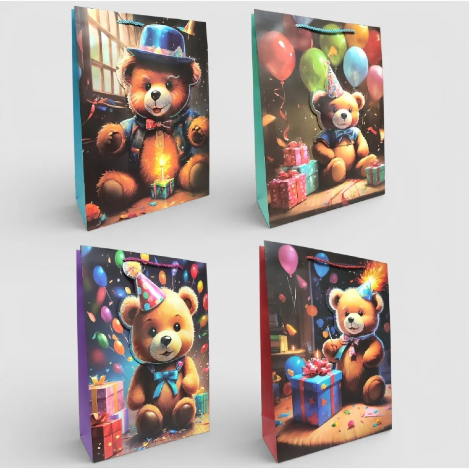 Подарунковий пакет картон 200грм, "Святковий ведмедик" МІКС 4 види, 31*42*12см 4 шт. в уп. /12/