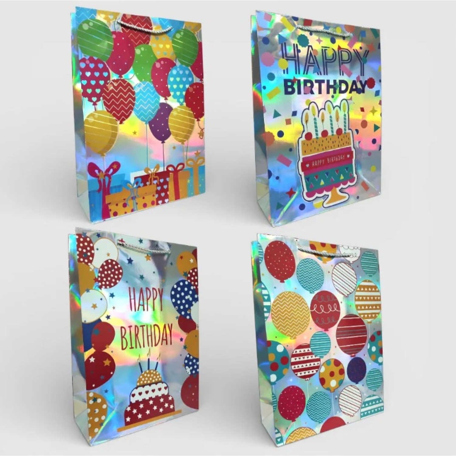Подарунковий пакет картон 200грм, "Яскравий ДН" МІКС 4 види, 31*42*12см 4 шт. в уп. /12/