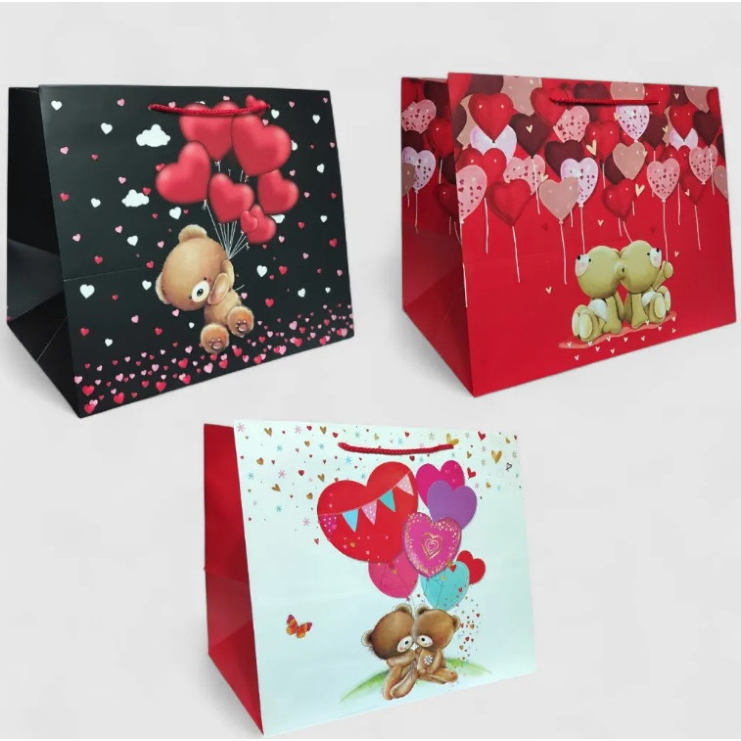 Подарунковий пакет картон 200грм, "Закоханий ведмедик" МІКС 3 види, 37*31*26?см 3 шт. в уп. /12/