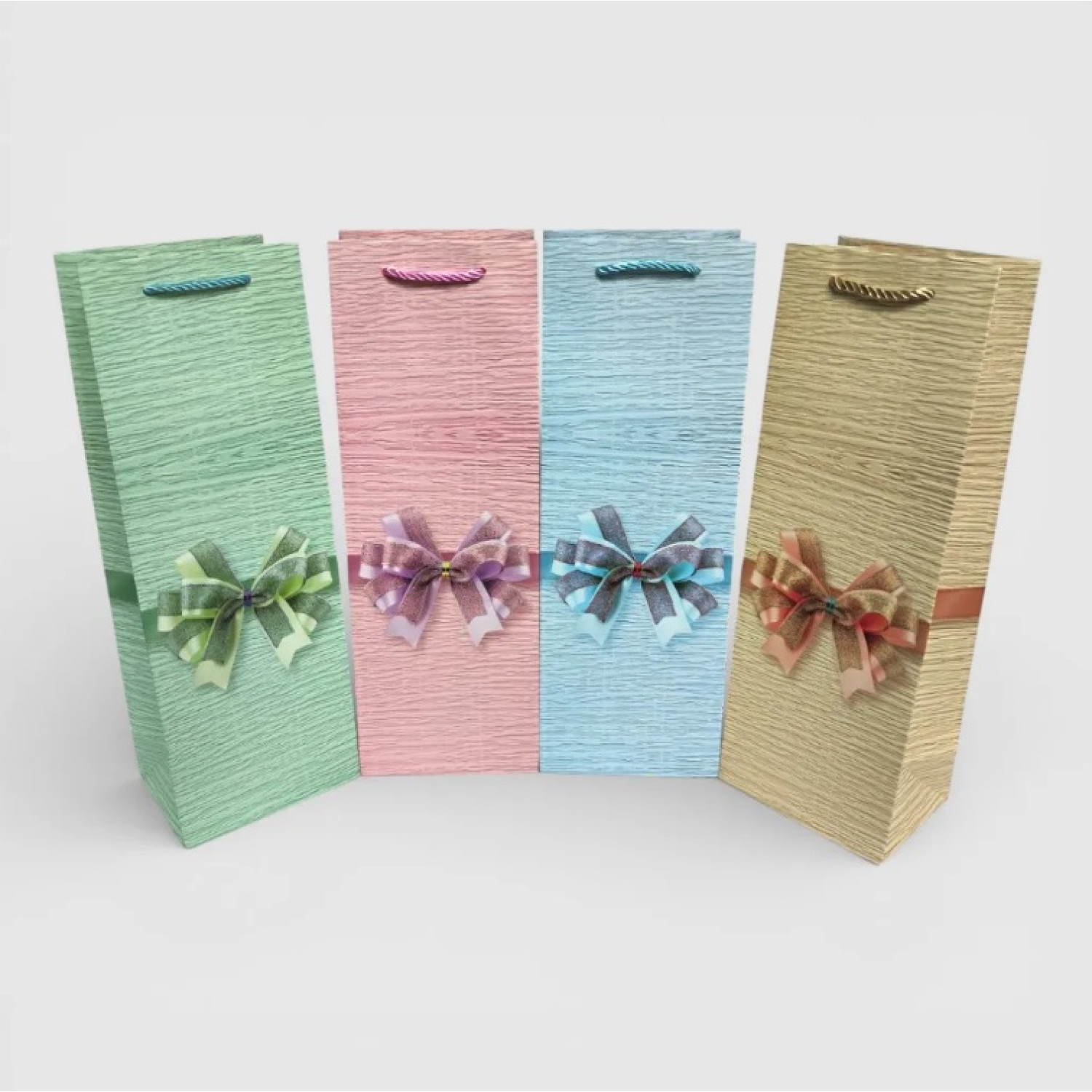 Подарунковий пакет картон високий, "Бантик" МІКС 4 види, 12*35*10см 6 шт. в уп. /12/