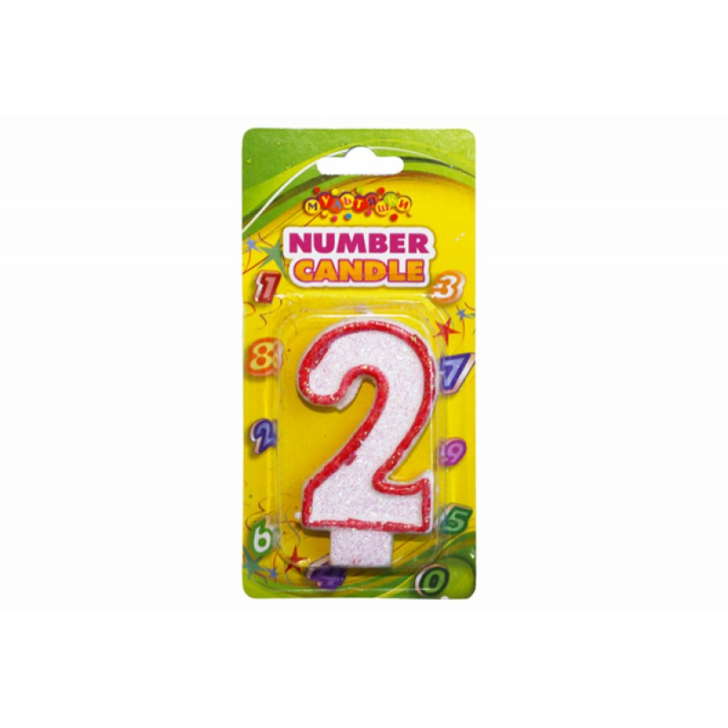 Свічка ЦИФРИ з кольоровим контуром і глітером всередині ЦИФРА 2, ціна за 4 шт. //