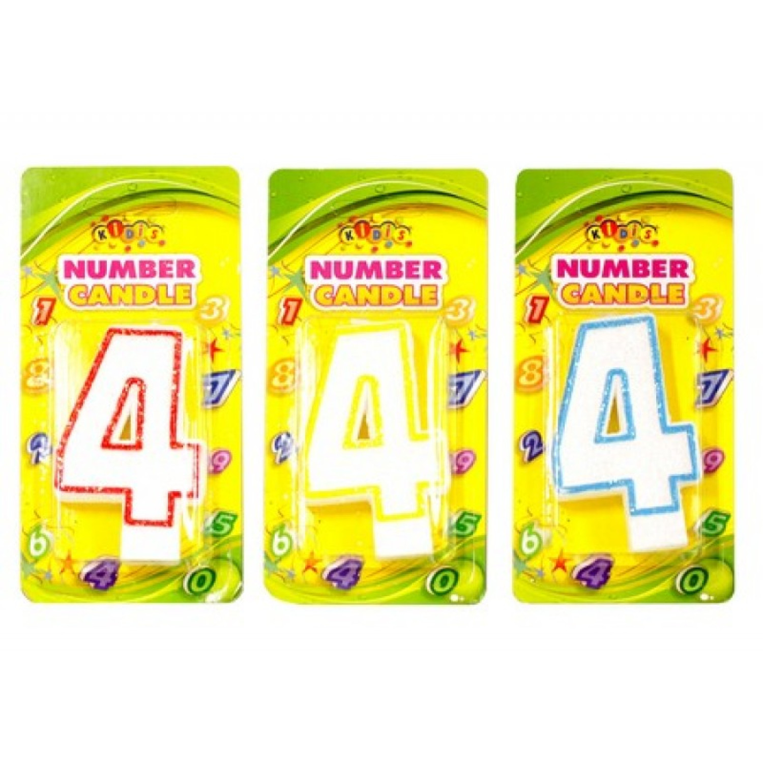 Свічка ЦИФРИ з кольоровим контуром і глітером всередині ЦИФРА 4, ціна за 4 шт. //
