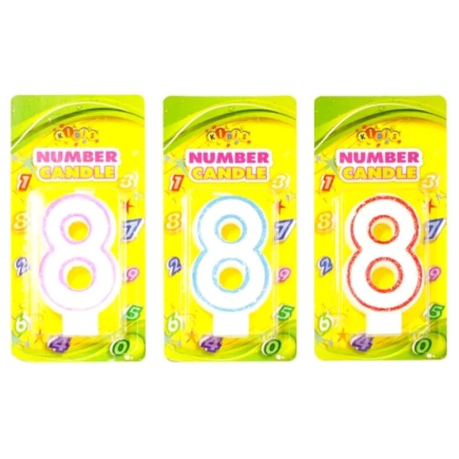 Свічка ЦИФРИ з кольоровим контуром і глітером всередині ЦИФРА 8, ціна за 4 шт. //