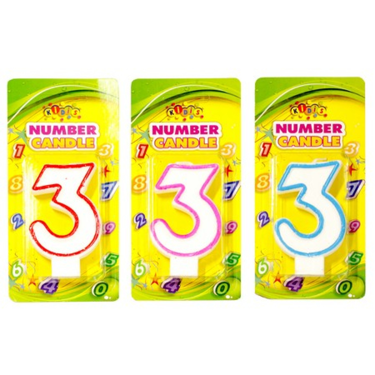 Свічка ЦИФРИ з кольоровим контуром ЦИФРА 3, ціна за 4 шт. //