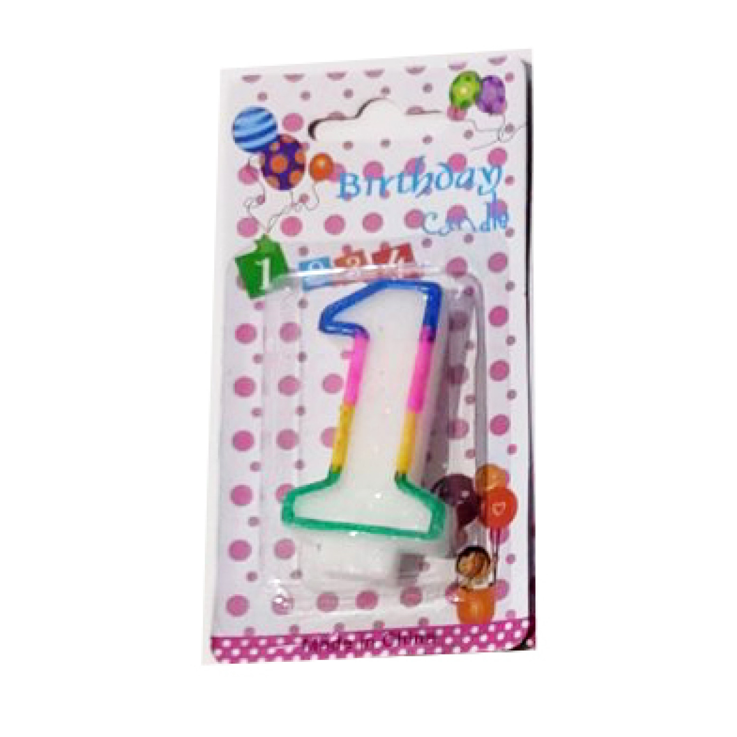 Свеча для торта "Цифры "1", 7,5*4см, блист., mix, без/этик.