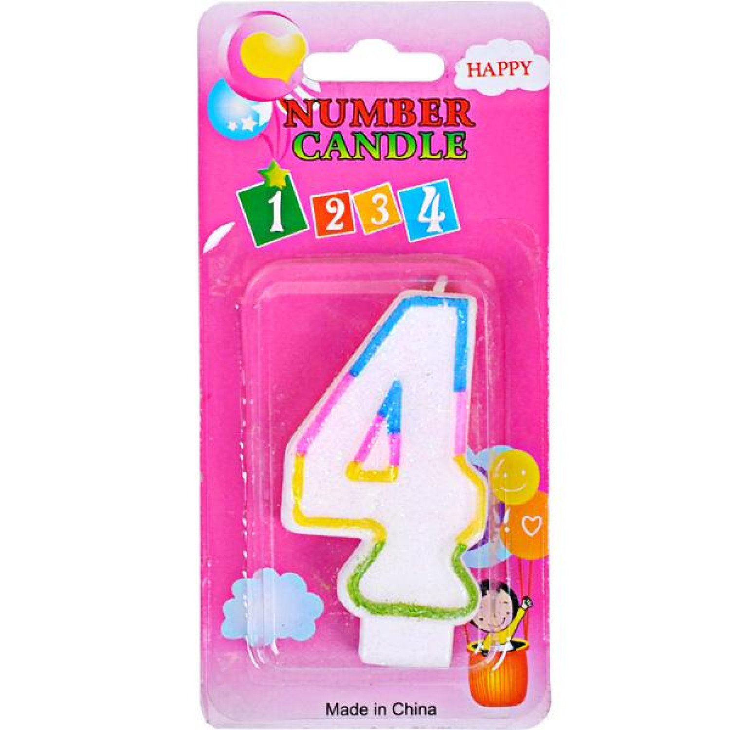 Свечка-цифра цветная 10-113 с блёсками "4"