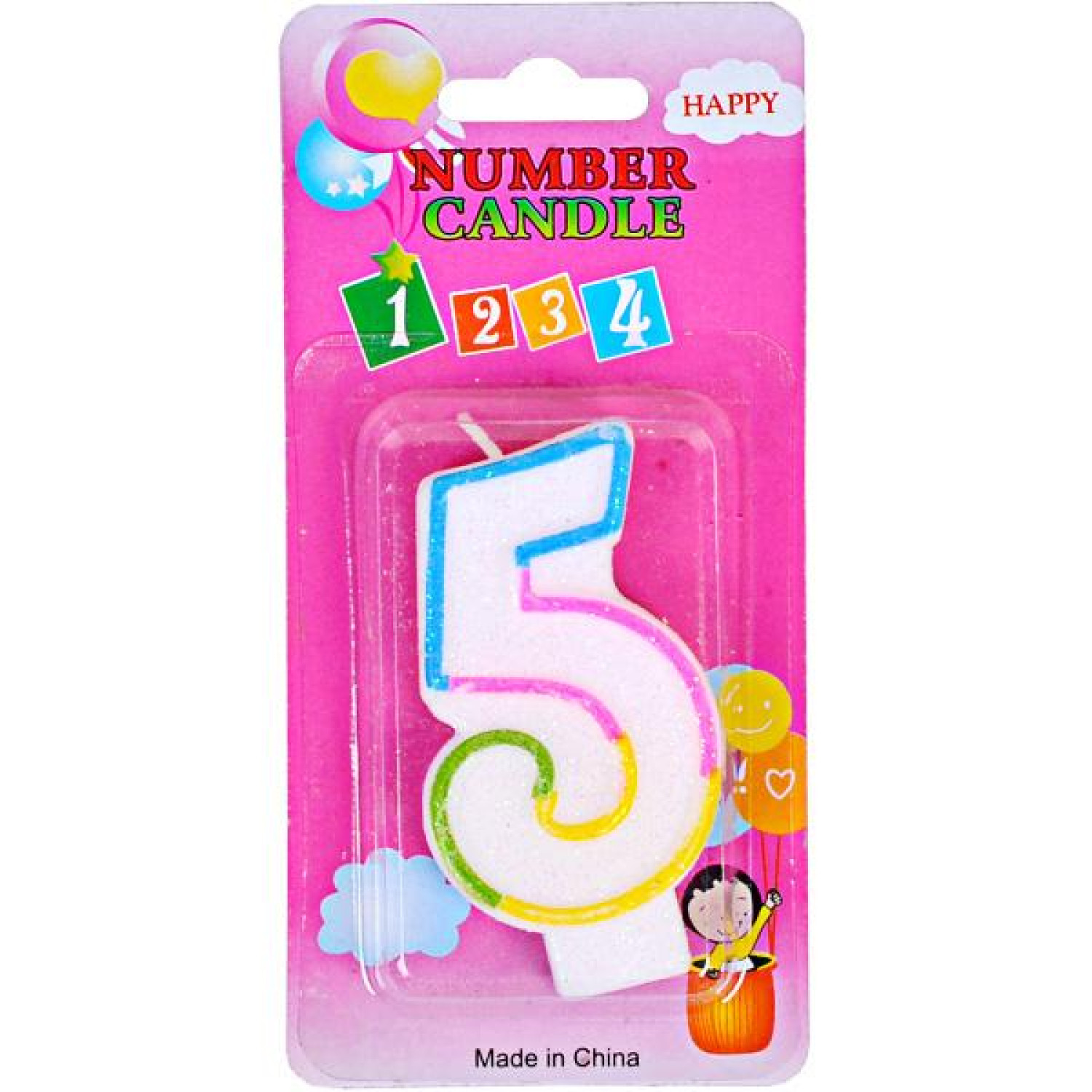 Свечка-цифра цветная 10-114 с блёсками "5"