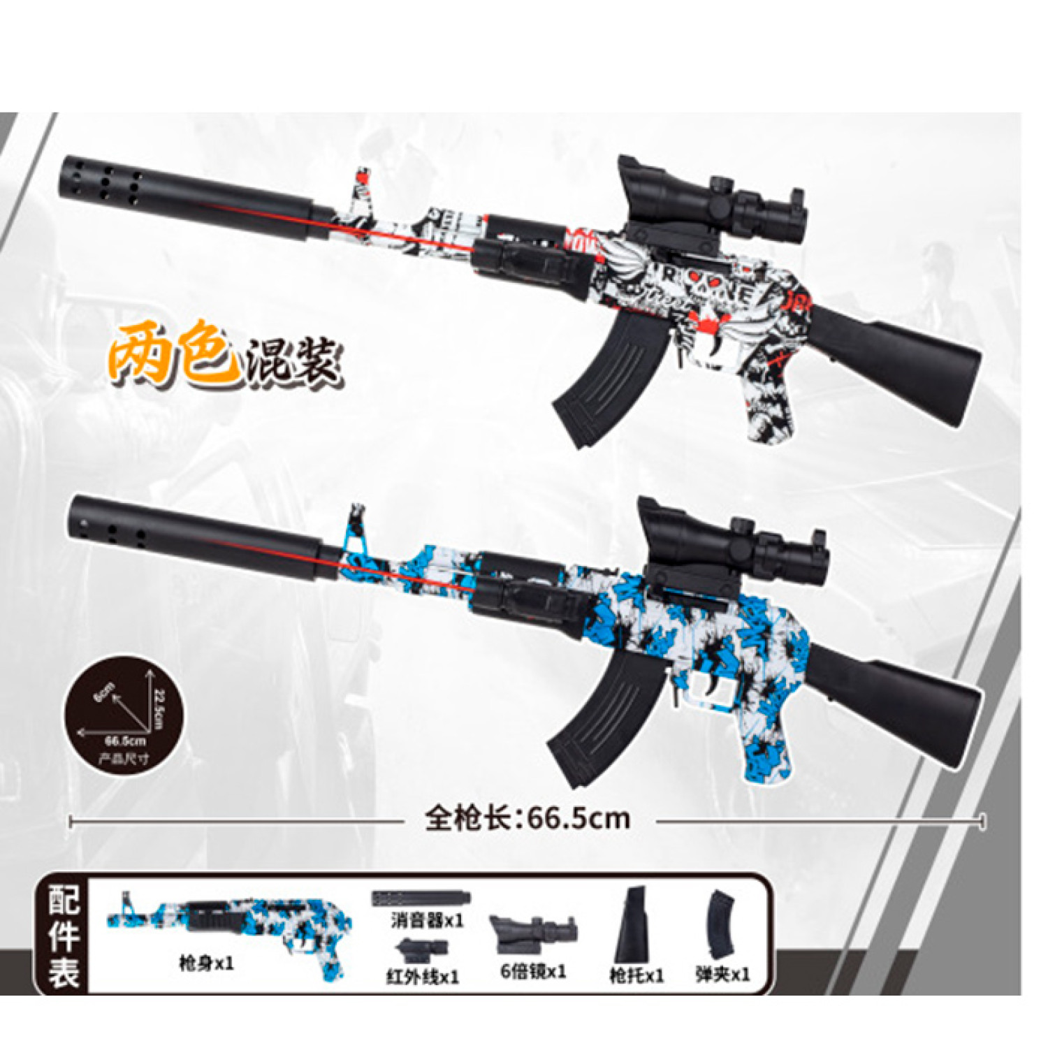 Автомат 66см, пластикові кулі, прицел, лазер, 2 кольори, на бат(табл), у п/е 19-44-5см /24/