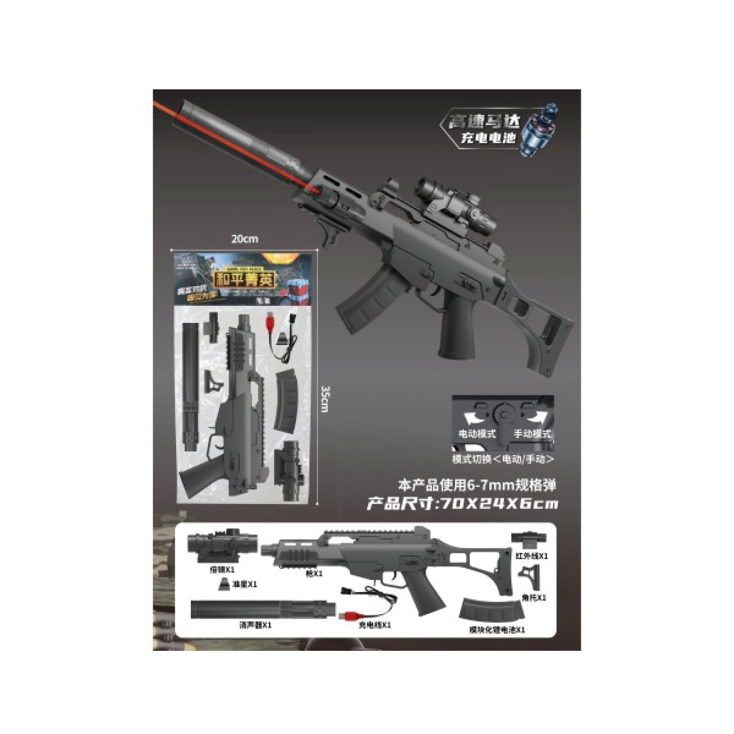 Автомат 70см, акум, пластикові кулі, лазер, складний, USBзарядне, у п/е 21-56-5см /12/