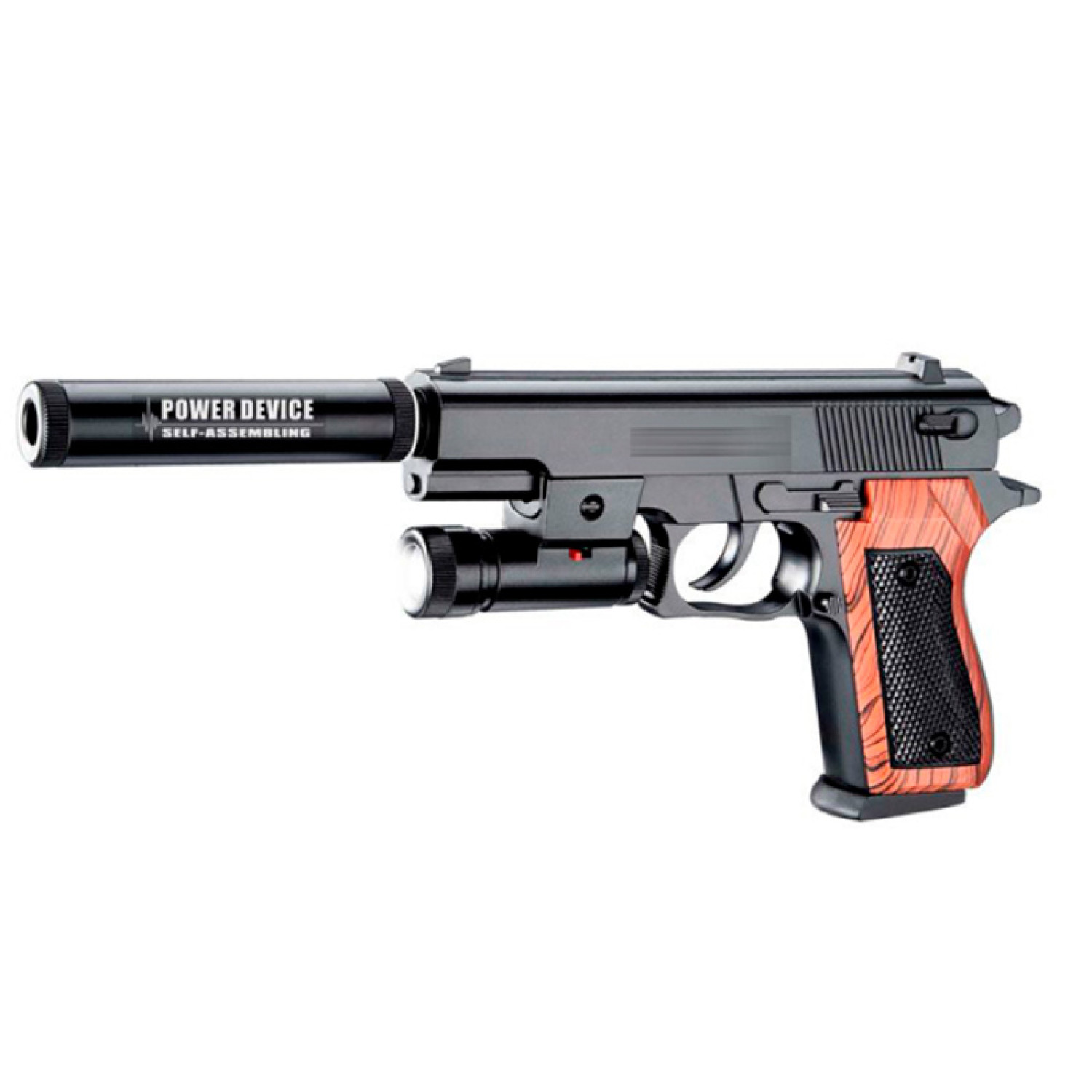 Пістолет 18см, пластикові кулі, лазер, світло, на бат(табл), у п/е 16-22-3см /72/