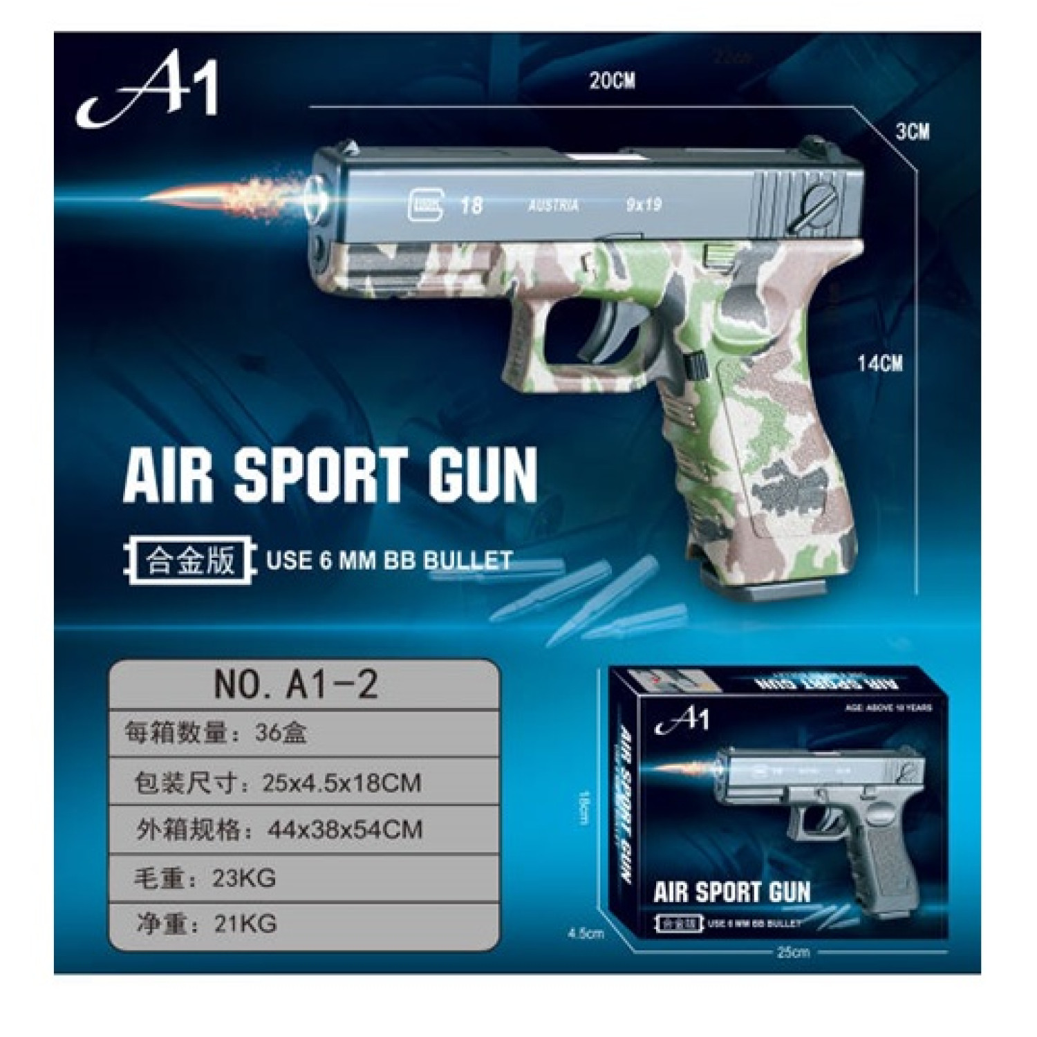 Пістолет мет. кульки, у кор. 19,5*13*3 см /36/