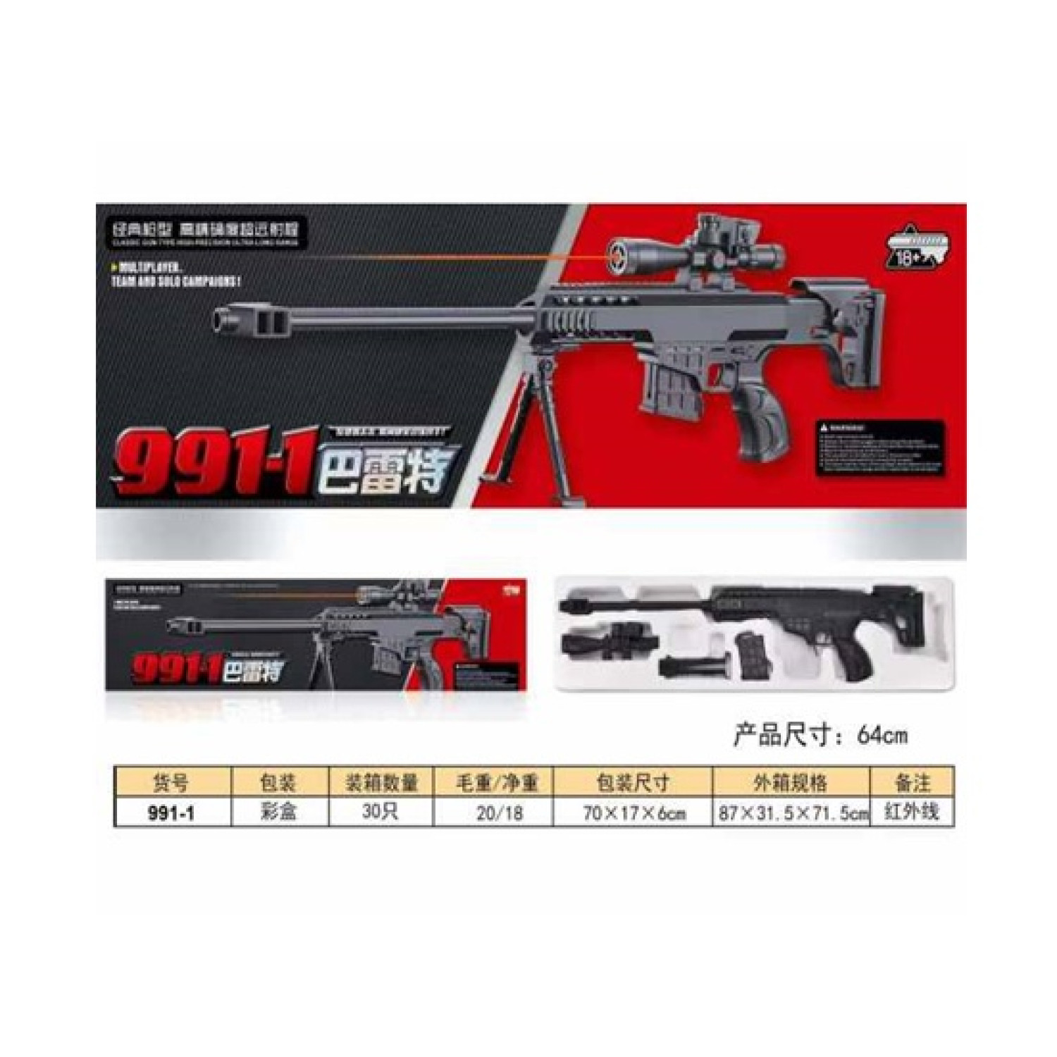 Снайперська гвинтівка кульки,бат.,лазер,у кор. 70*17*6 см /30/