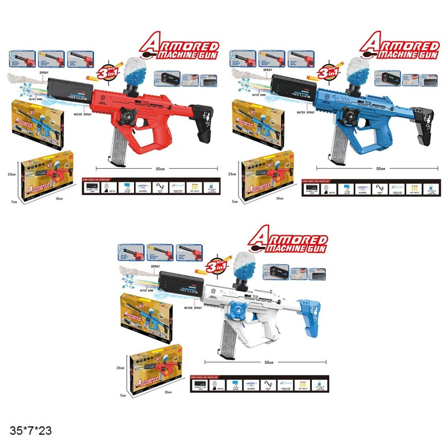 Автомат G696-1C/2C/3C з гелевими пульками та присосками,акум.USB.світ.дим.3кол.кор.35*7*23 /36/
