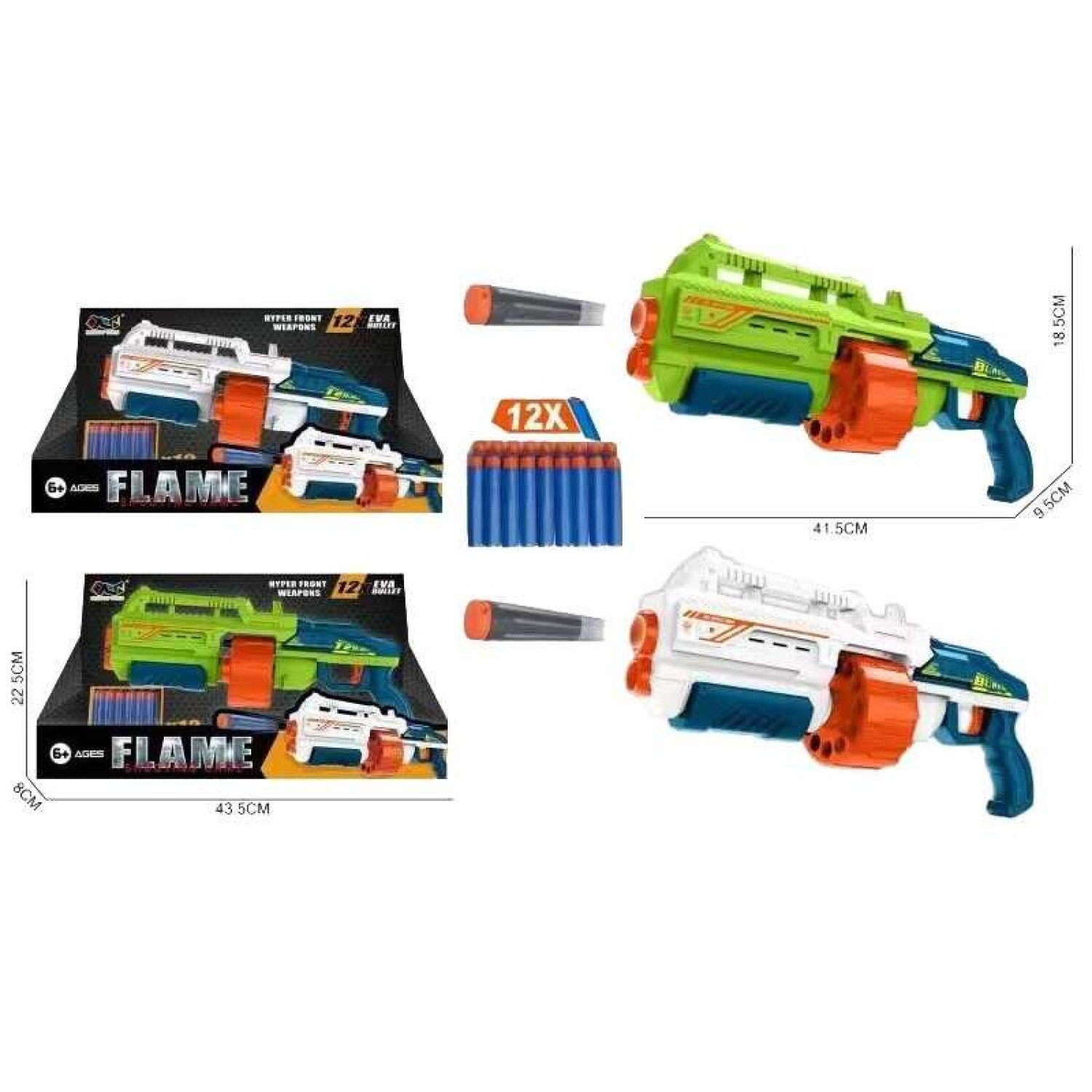 Автомат 2 кольори, стріляє м’якими патронами, механічний принцип роботи, 12 патронів, в кор. /24-2/