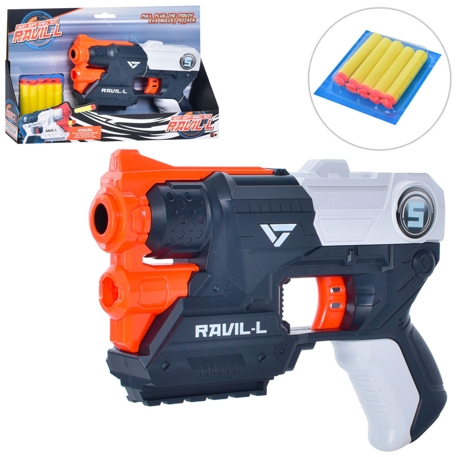 Пістолет 20см, кулі-присоски 5шт, 2 кольори, в корці, 30,5-20-4,5см /48/